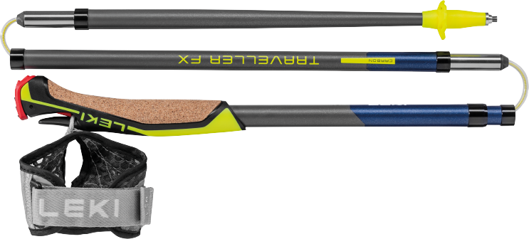Discover lightness and convenience during your workouts with the LEKI Traveller FX. One Nordic Walking poles. These foldable carbon poles weigh only 181 g, making them exceptionally lightweight, and feature the new Nordic Shark system, offering excellent grip strap technology designed specifically for Nordic disciplines.