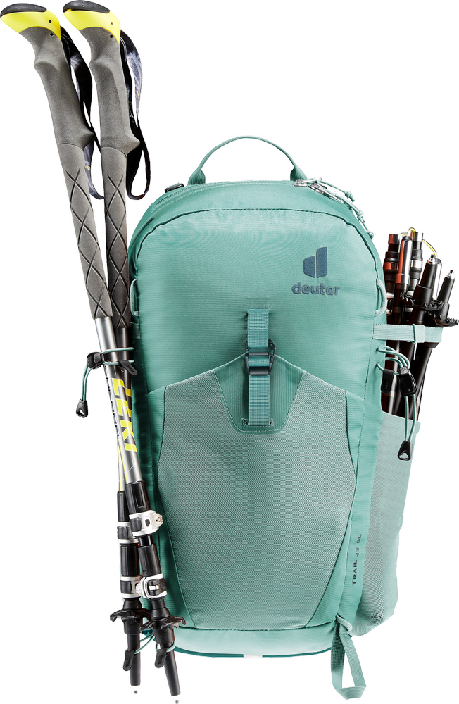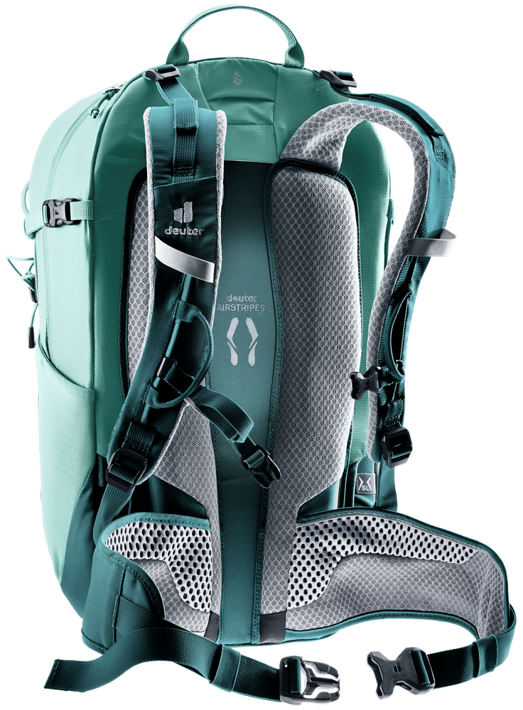Deuter Mountain Backpack - The reduced contact area and large ventilation channels of the Deuter Airstripes back system combined with perforated shoulder and hip straps provide maximum airflow and even weight distribution - for a comfortable, secure fit on any terrain. Loops on the shoulder straps keep the via ferrata carabiners close at hand. And with a large front zip, front small-item pocket and side pockets, gear and gear are always easy to access.