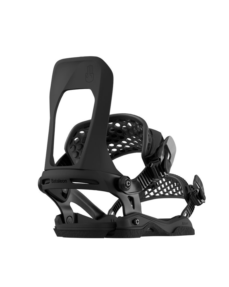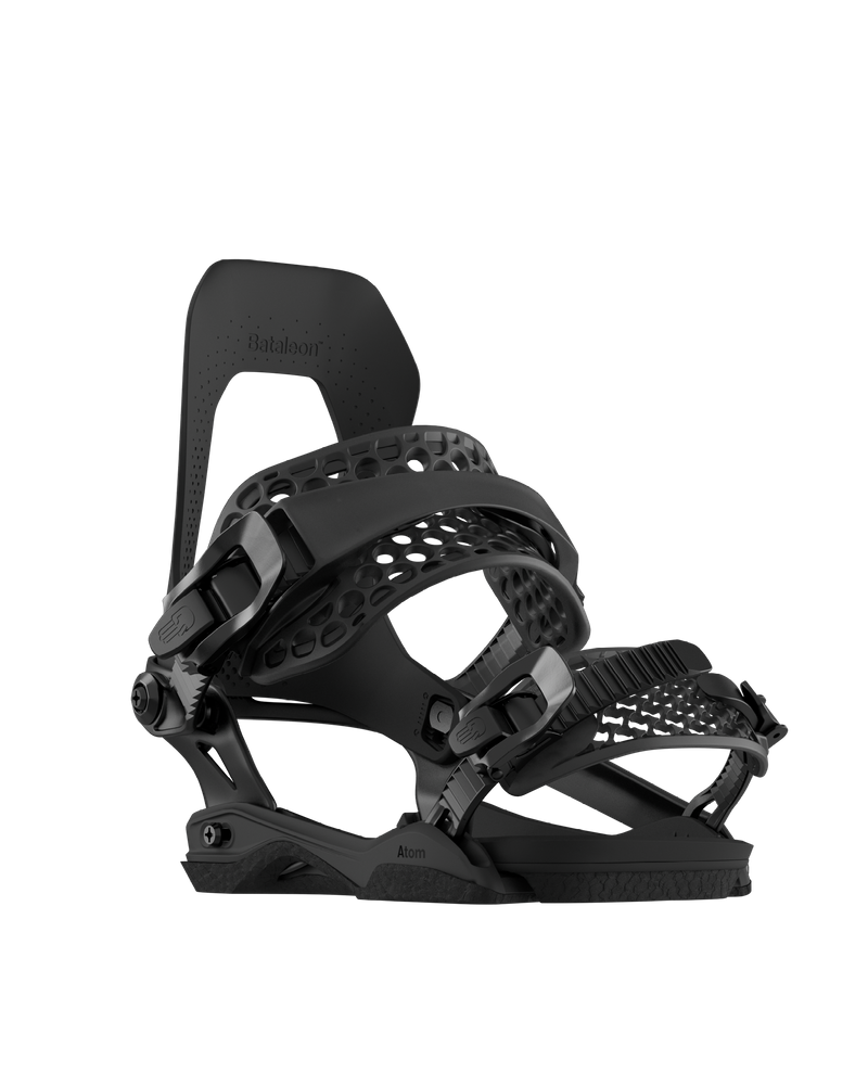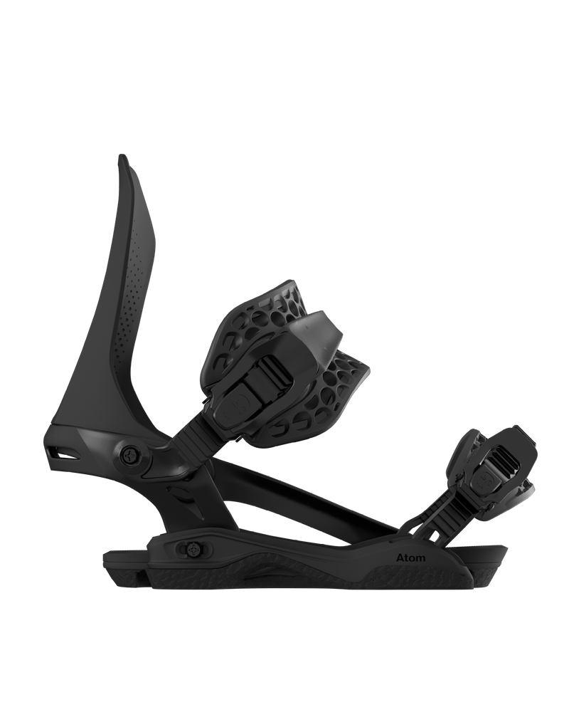 The Atom is our premier all-mountain binding that defines precision and performance. Crafted on the Asymwrap chassis, it boasts carbon-infused baseplates and Airback highbacks, delivering a seamless blend of edge-to-edge response and lateral flex for effortless tweaks. Say goodbye to ankle discomfort with the Infinity Ankle Strap, while the hinged 3D AuxTech® Cradle toe strap guarantees a perfect fit with any boot. Get ready to experience an unmatched connection with your board.