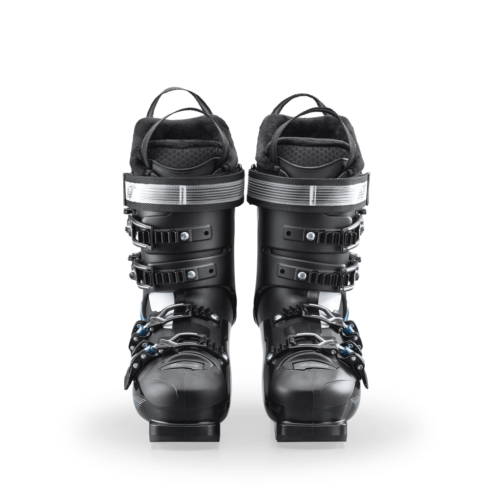 Thought an easy-flexing, high-performance boot with a perfect fit didn’t exist? Think again. The Promachine 95 is lightweight and low-volume, making it energetic and reactive and allowing it to perform well on groomed trails, in bumps, and through crud. It’s also extremely comfortable. Primaloft liner material and an articulated rear cuff, which allows for more calf space, provide a warm, plush feel, and a 98mm last shell and 3D liner, which can be customized using infrared heating, allow for an even more precise fit. Though soft flexing, the 95 utilizes stiffer plastic along the spine of the shell to create lateral stability and fast energy transfer, making it extremely quick and precise. The Promachine 95 is perfect for lighter women who ski with more finesse and want a boot that’s both forgiving and responsive.