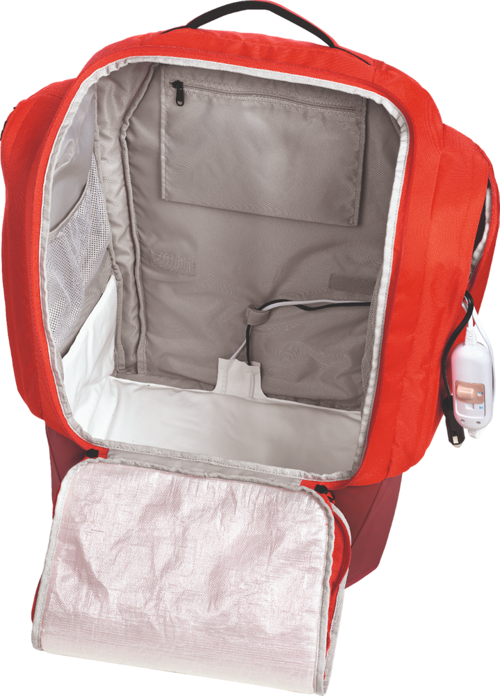• DC and car cable plug-in: The Redster Heated Boot Bag's integrated heating system uses a DC power source as well as AUX.