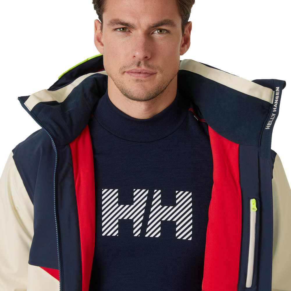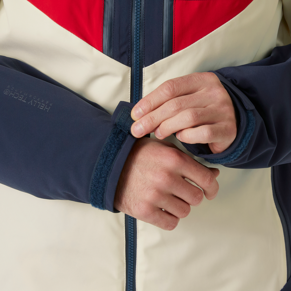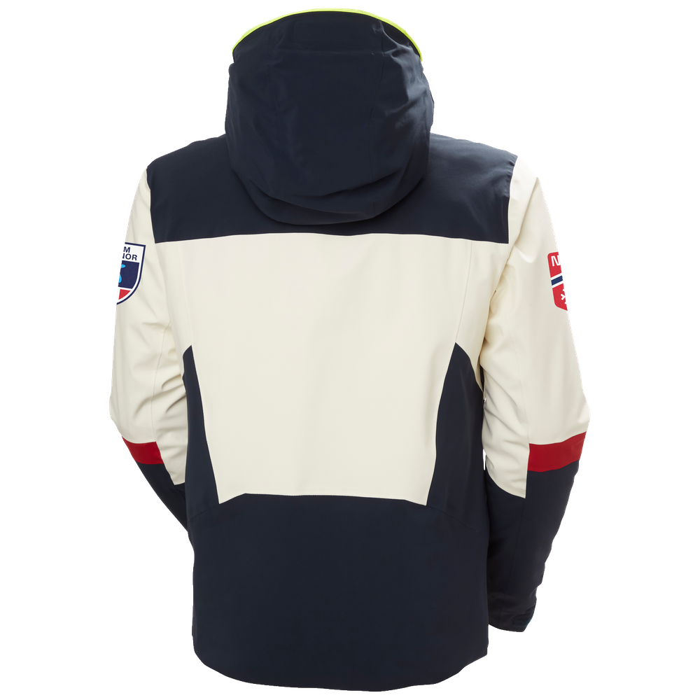 We developed the Men's Kvitfjell Race Insulated Ski Jacket with and for the Team Telenor Alpine Norway ski teams as well as for other alpine racing enthusiasts. When the weather conditions change on the slopes, this jacket keeps you warm and dry thanks to our breathable and waterproof HELLY TECH® Professional technology. We’ve constructed the forearms specifically with ski racers in mind: the forearm offers sufficient space for arm guards and gloves so that you can pull the jacket on and off smoothly. You can experience a full range of motion with the jacket’s 4-way stretch fabric and articulated sleeves. Other convenient features include an adjustable powder skirt, an adjustable hood with a neon brim, and multiple pockets, including ones for your cell phone and ski pass. This jacket is one of several Kvitfjell Race products designed to outfit your ski racing team from head to toe.