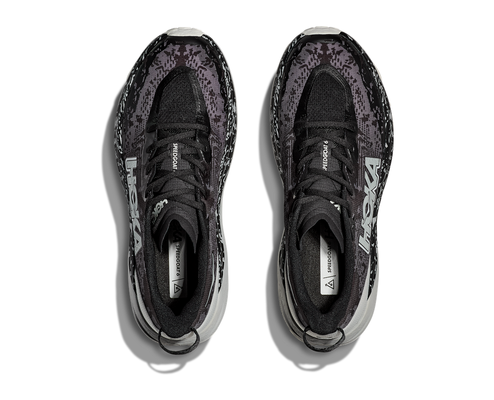 A grippy, responsive ride for technical terrain. There’s only one GOAT on the trail. And this is it. Combining HOKA’s tried and true cushioning with aggressive traction and ultralight materials, the Speedgoat 6 was born to tame the trail. A workhorse for technical terrain, this recent reissue was refined with a breathable woven textile upper, foot-hugging internal chassis, plusher dual gusset tongue, and revised lug orientation inspired by the hoof of a goat (what else?)