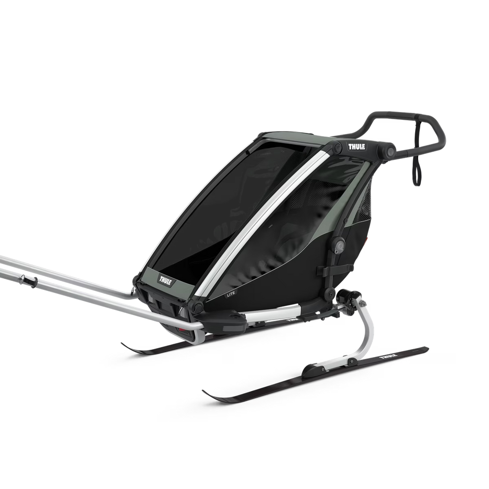 The Thule Chariot Lite Single is a versatile, single-seat multisport bike trailer designed for active parents. It functions as a bike trailer, stroller, jogging trailer, and even a cross-country ski trailer (additional kits sold separately). Its lightweight frame and compact dimensions make transport and storage incredibly easy.