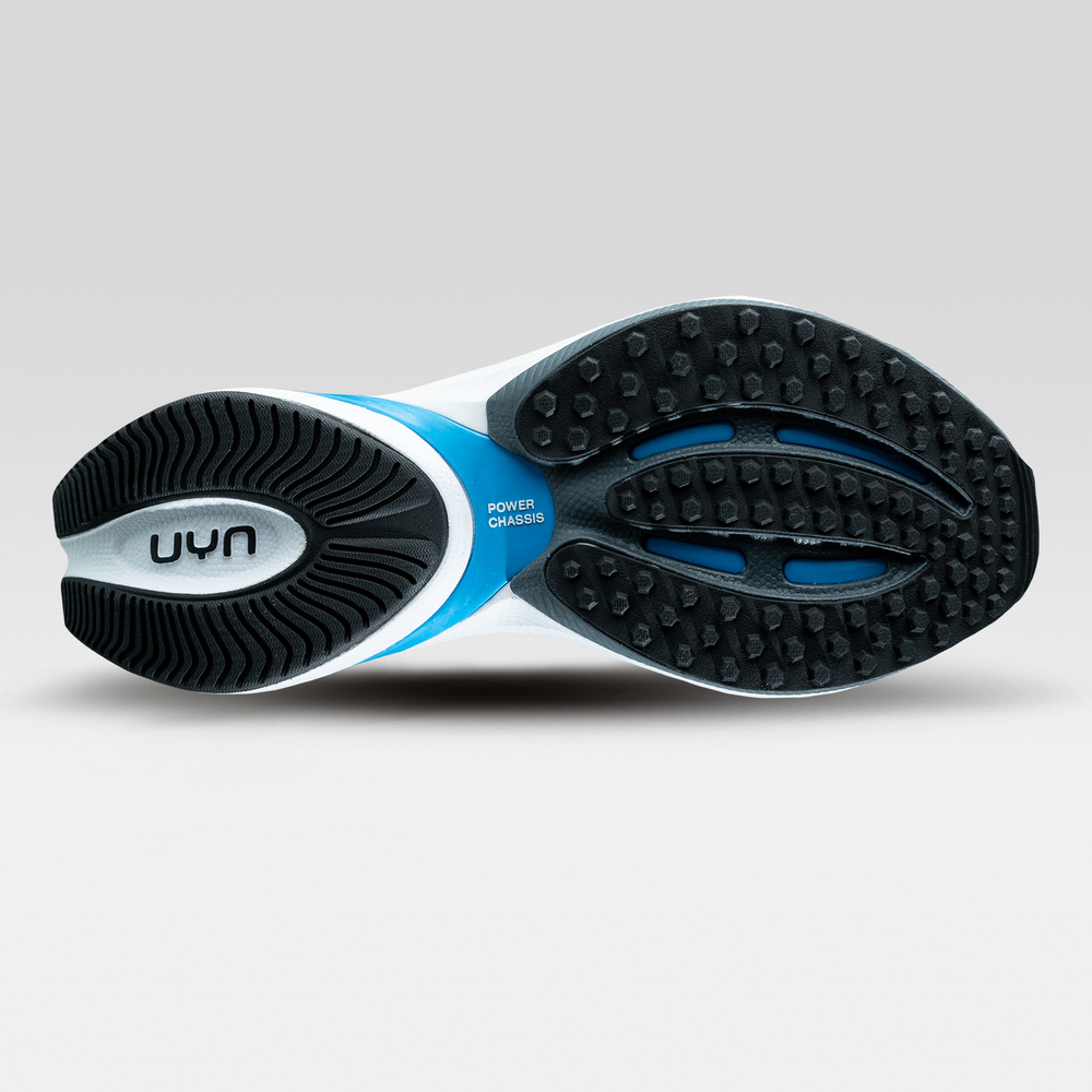 Revolutionary performance. UYN® SYNAPSIS is the shoe desi-MAN gned to grind out kilometres on the road, from training to racing. Engineered from the sock using Flexicorn bio-fibre from corn seeds, it offers exceptional ventilation, stability and support. The combination of the rigid Power Chassis platform with the ultra-light Propulsyon foam delivers reactivity and propulsion with every stride.