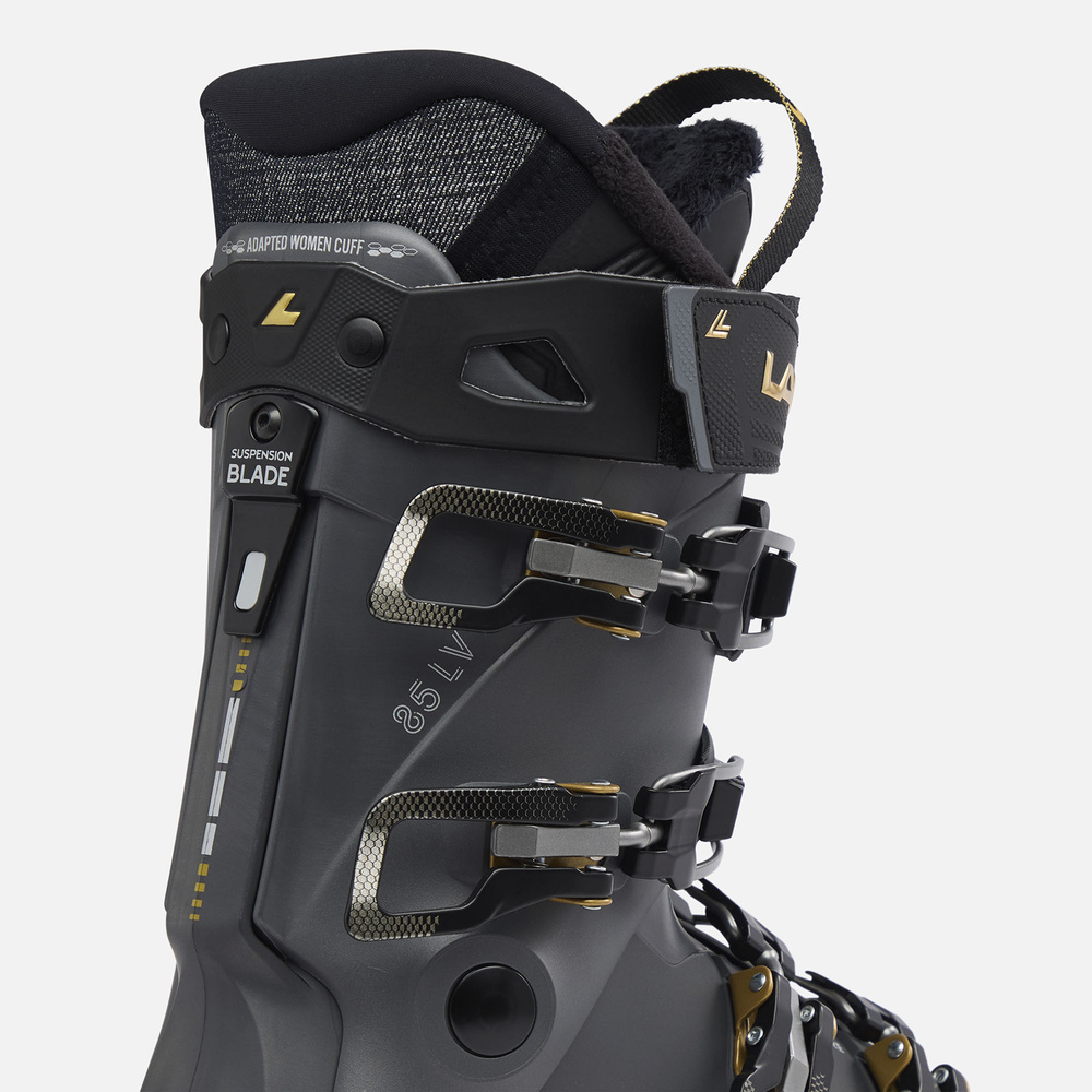 - Suspension blade: An external blade offers excellent and smooth connection between upper and lower cuff, to promoting efficient movements. Providing more absorption and suspension as well as more power energy and improved control while skiing.