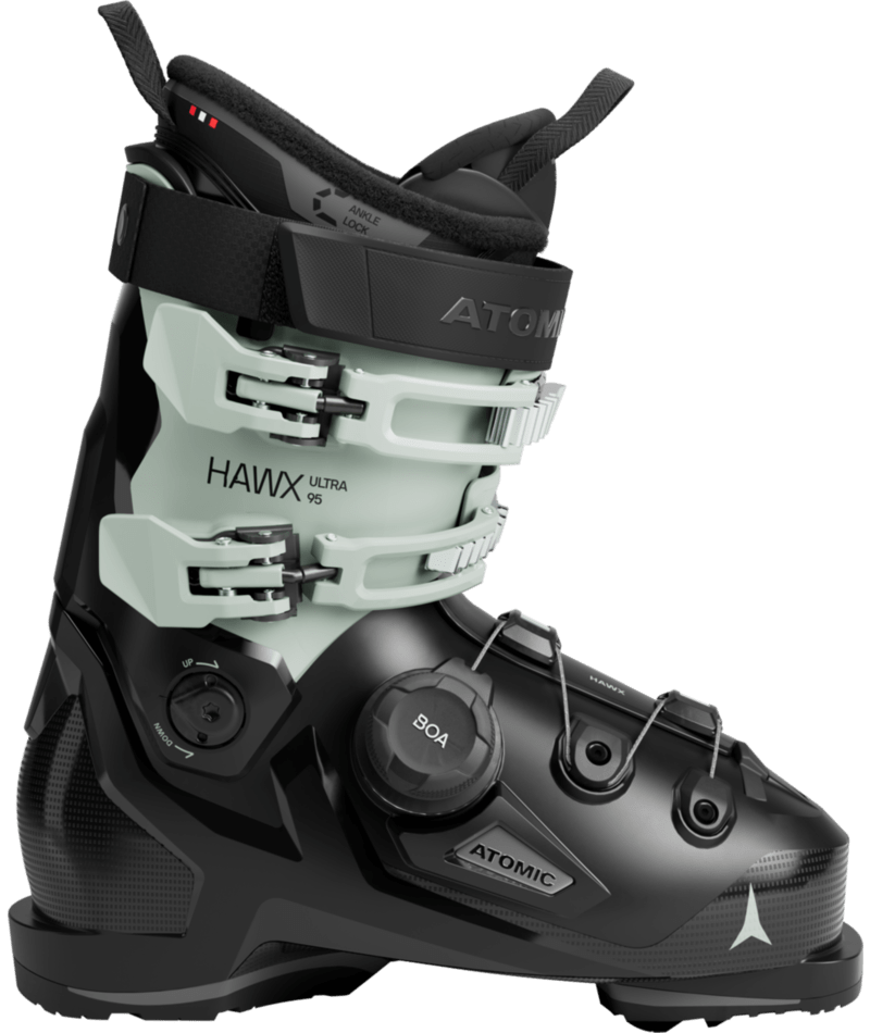 - The Atomic Hawx Ultra 95 BOA W offers all-mountain versatility and a gentle flex, with BOA® technology for a dialed-in fit.