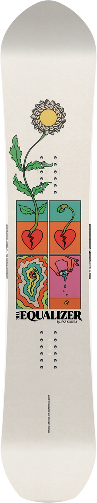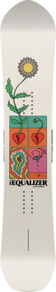 Inspired by Jess Kimura’s transition from the streets to the backcountry, the Equalizer was born to level the playing field in the mountains and offer female riders a high-end all-mountain option designed specifically for women. The series now features an updated, specially engineered RESORT V2 hybrid camber profile, providing positive camber through the length of the board for carving control, while reverse camber in the nose and tail maximizes float in deep snow—helping you ride better across variable terrain and changing conditions.