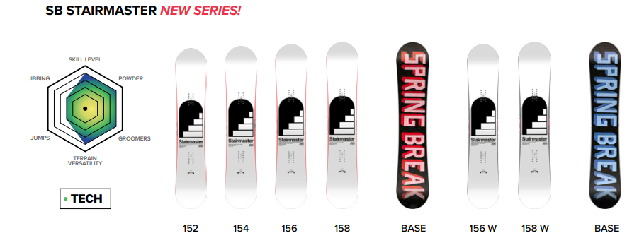 The Stairmaster is a snowboard for Spring Break fans looking for a progressive board for the park and the resort.
