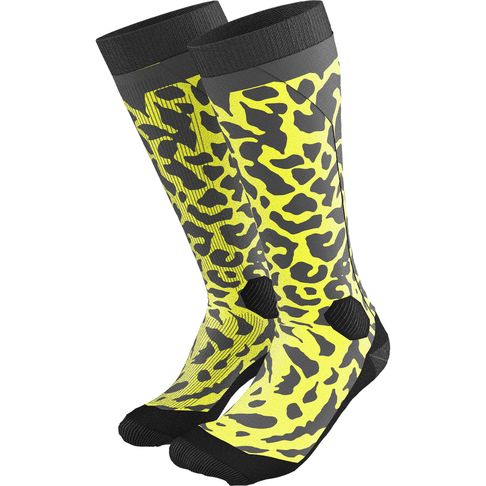 Colorful FT Graphic Socks are a cool addition to any ski touring outfit. Coordinated with the Dynafit FREE Touring collection, these socks are available in various graphic designs For good protection on the ascent and the downhill, these lightweight socks have medium cushioning at the toes, heel and ankle area so you still get good power transfer. Their quick-drying material wicks away moisture and keeps feet fresh for a longer period of time.