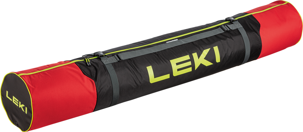 - LEKI ski bag for 2 pairs of alpine skis up to 185 cm, durable polyester, full zipper, pole storage.