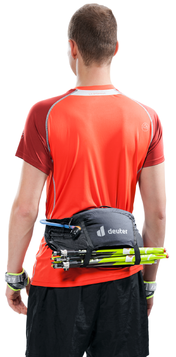 The easy-to-use trekking pole attachment on this running belt enables quick, on-the-go access to poles, without missing a stride, on longer trail runs. Valuables, energy bars and a hydration bladder are also easily accessible thanks to clever compartment configuration. A trim-to-fit waist belt cuts down on excess weight and ensures a personalized fit. This bluesign® product uses body fabric made of 100% recycled materials with components made using environmentally friendly, resource-efficient manufacturing practices. It meets the Green Button standard, is climate neutral, and PFC free.