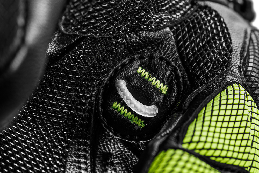 The back of the hand is fortified with flexible silicone pads reinforced by a ceramic shell, providing superior abrasion resistance and impact protection. Silicon grip pads on the palm enhance traction for a secure hold in any condition, while the premium goatskin leather offers exceptional sensitivity and durability.