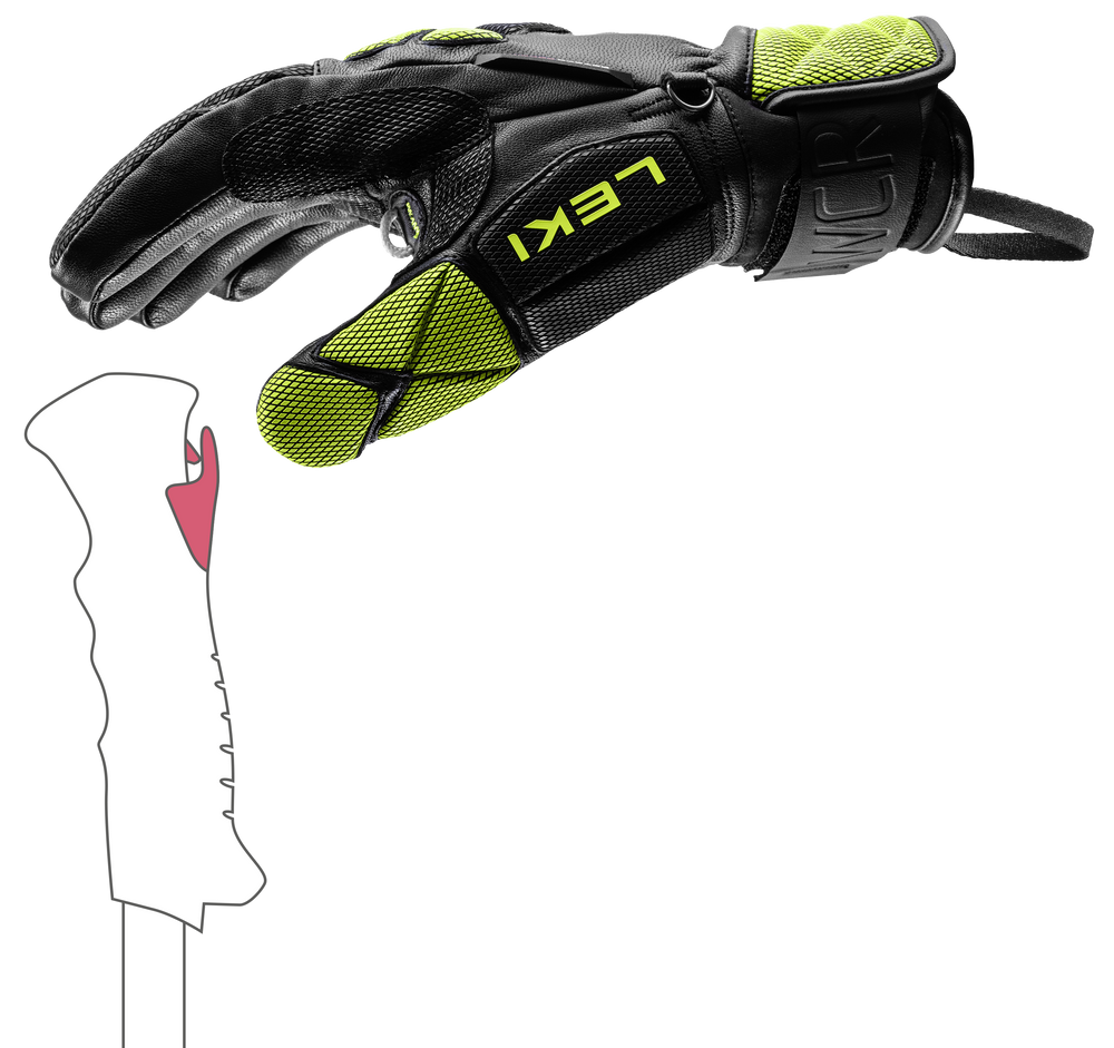 With a Race Fit and advanced pre-curved construction, it offers a close, anatomical fit that ensures optimal pole control. The Trigger 3D system allows for fast, secure attachment to LEKI poles, maximizing racing efficiency.
