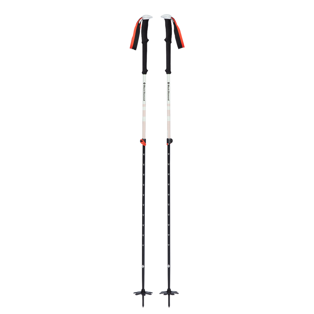 A versatile four-season pole for skiing, hiking and hauling loads to advanced base camp, the Black Diamond Expedition 3 features dual FlickLocks for a full range of adjustability. This pole fits in your duffle when it's time to lug your gear to the airport, and the updated foam grip adds comfort while the new soft touch, dual density grip-top grabs bindings and buckles with ease for quick adjustments. The Expedition 3 comes with powder baskets, so you can switch them out to match the season and the trip, and the new vari-width strap adds comfort and adjustability while moving through terrain.