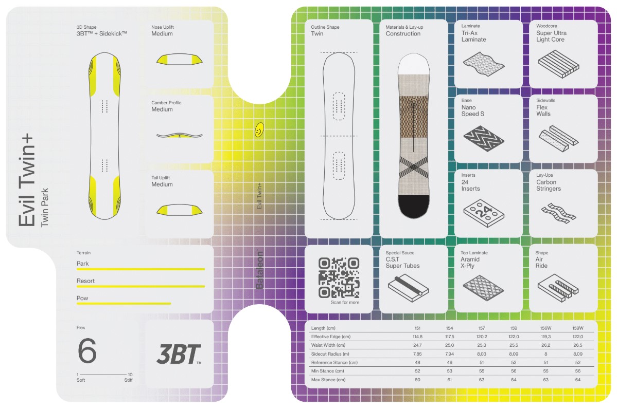 The most iconic Bataleon board elevated to the next level. A lighter core, faster base and upgraded materials make this the best twin freestyle board in the collection. This season’s Evil Twin+ looks better than ever with the new outline shape.