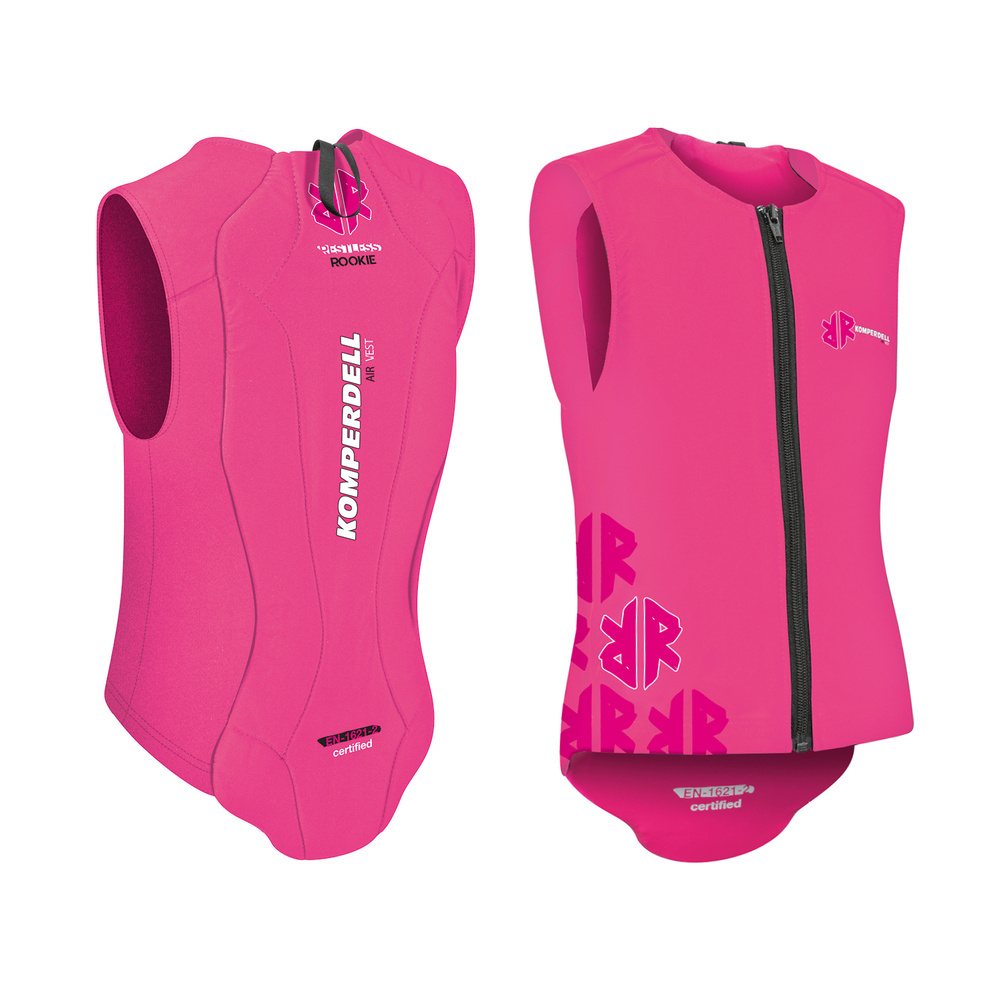 Lightweight junior vest with ergonomically shaped back protector. The protector adapts to body heat - no more need for a kidney belt.
