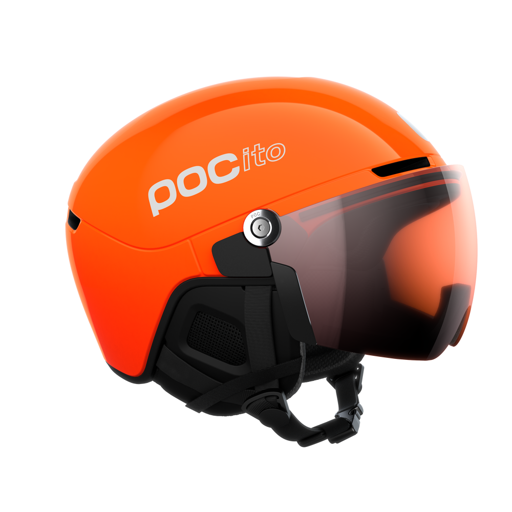 - POCito Obex Visor – lightweight kids' ski helmet with integrated visor, Mips® safety, RECCO® reflector, and high-visibility POCito colors.