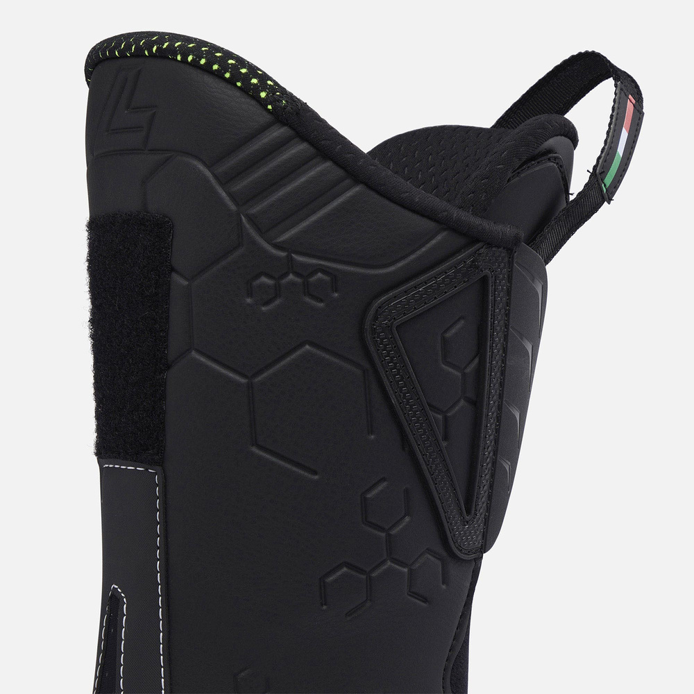 • 2 dual pivot: Creates mechanical advantage by amplifying the energy with increased leverage. Helping skiers to engage the full length of the boot for increased power and initiation.