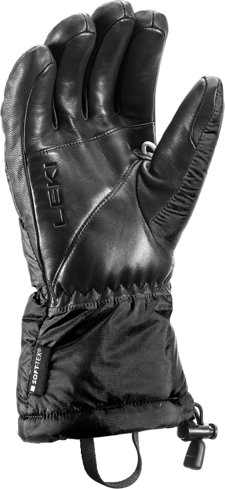 The Feather Shine nylon shell adds a stylish shimmer, while the SOFT-TEX® waterproof membrane ensures complete weather protection. The palm made of durable sheepskin leather provides excellent grip and long-lasting comfort. With Trigger System compatibility, you can snap into your LEKI poles in seconds. Pull-out loops make taking them off effortless, even when your hands are damp or cold.
