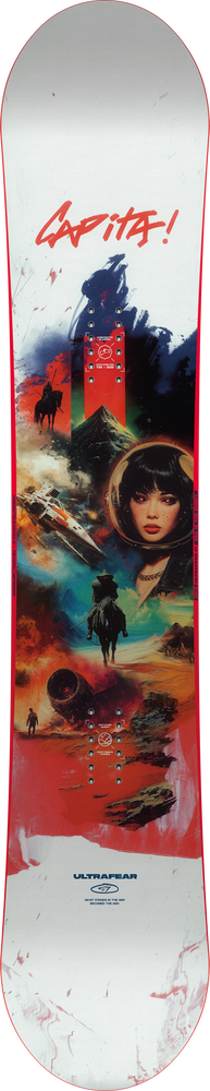 For another season, the Ultrafear Camber continues with the legendary RESORT V1 camber profile – the same used in the legendary CAPiTA D.O.A. Thanks to a cork edge dampening system running the full length of the board and a high-strength configuration made of new HYBRID CARBON HOLYSHEET™ BI/BI fiberglass, the advanced technical construction of the ULTRAFEAR delivers enhanced ollie power and durability that many riders seek. Equipped with top-level tech features and further upgraded with the P2 SUPERLIGHT CORE™ and the ultra-fast sintered SUPERDRIVE™ ADV BASE, ULTRAFEAR is one of the best resort and park boards in the world.