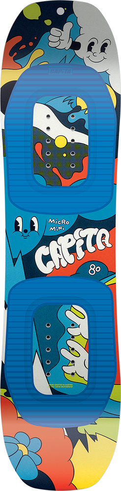 EVA Topsheet Pads surround the binding mount areas, offering a comfortable board feel underfoot, making the all-new Micro Mini the ideal experience for turning and learning.