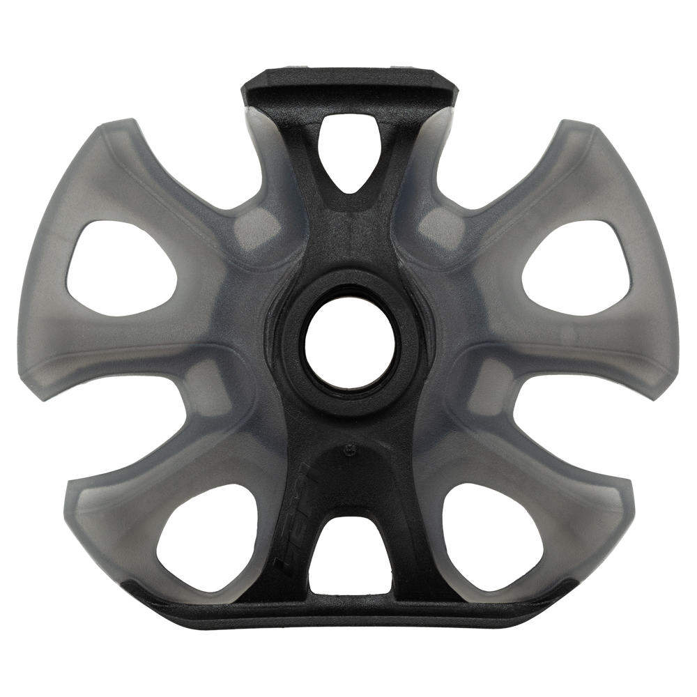 Ski tourers have waited generations for this clever idea. This new Powder Basket helps you when handling the heel lifter, shoes, and ski skins. It has a straight, strutted edge on two sides. You can use one side to adjust the heel lifter without looking and almost without standing as well as open the binding. You can use the long side to effectively and quickly remove snow and ice from the ski skin. With a diameter of 95 mm, it provides safety and saves energy when using the poles to climb uphill and for the journey down.