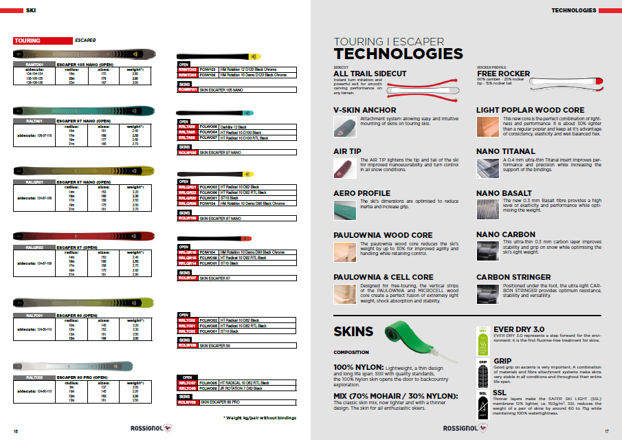 • Rossignol touring skis from the Escaper series.